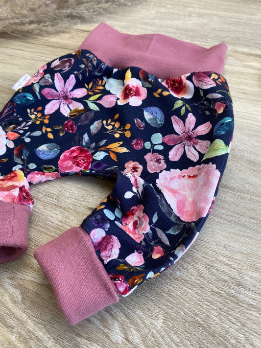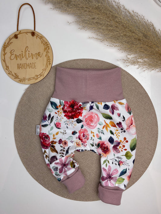 Pumphose Baby Mädchen Baggypants bunte Blumen rosa altrosa