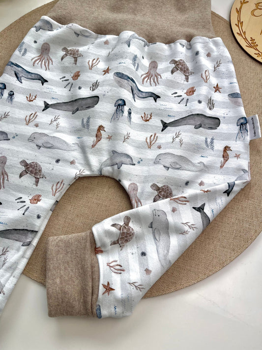 Baggypants Baby Pumphose Kleinkind Unterwasserwelt Jersey Babyhose streifen Weiß Blau