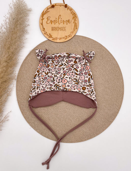 Mütze Öhrchenmütze Blumen Boho Flowers Baby Übergangsmütze