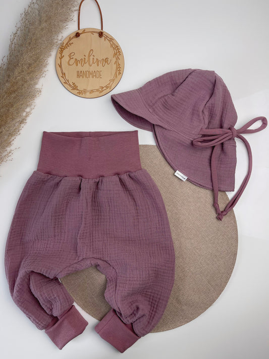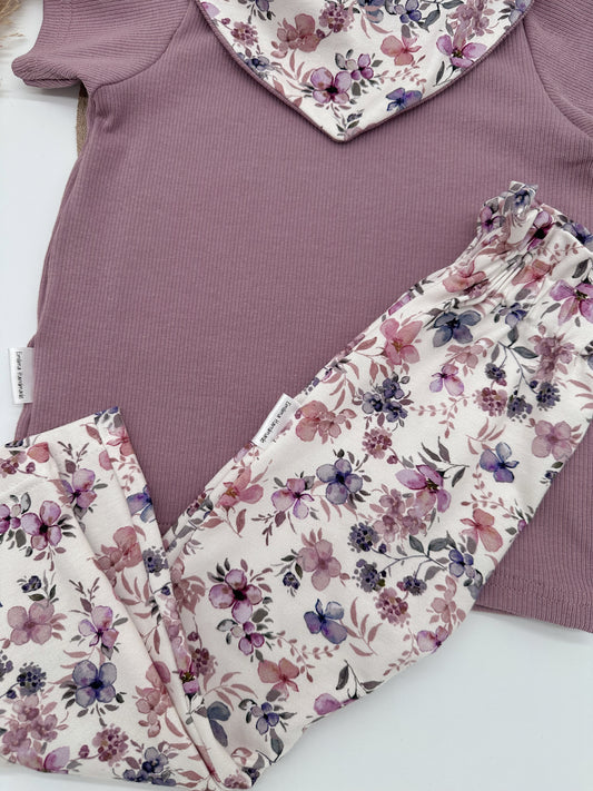Set Paperbagpants , Halstuch& Rib Tshirt Flieder / Hortensien