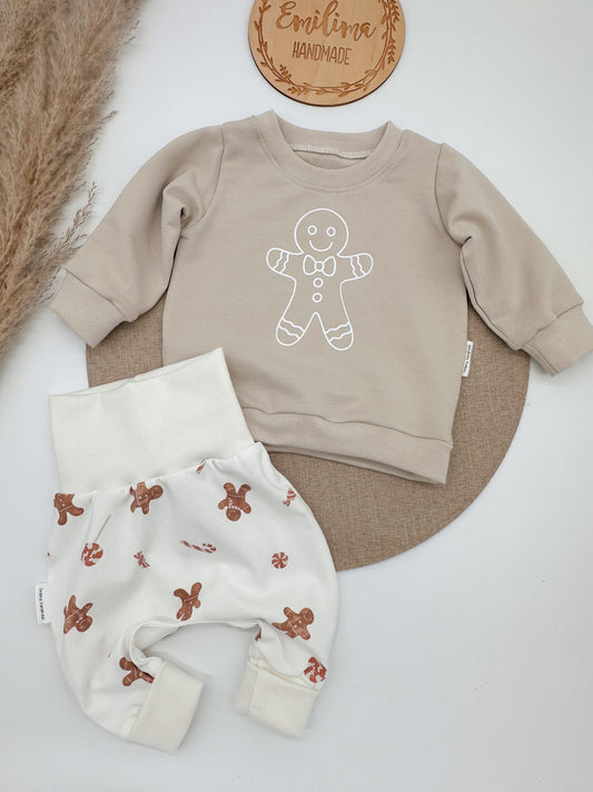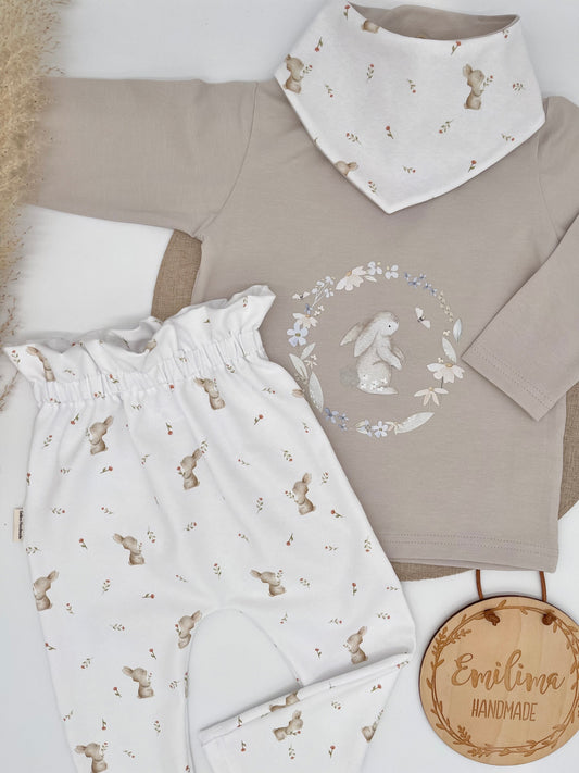 Set Baby Paperbagpants Halstuch Langarmshirt Sand beige Hase Bügelbild Ostern Frühling