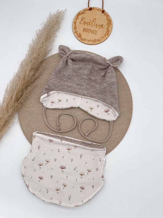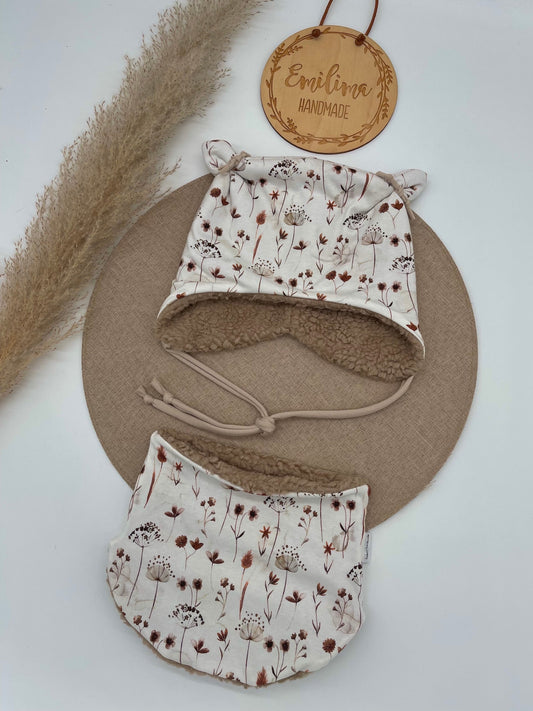 Set Wintermütze Öhrchenmütze und Loopschal Teddyfleece Baby Kleinkind