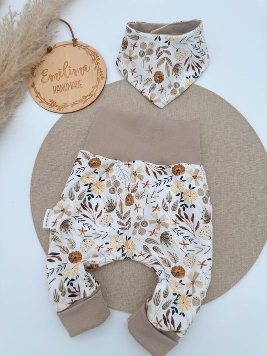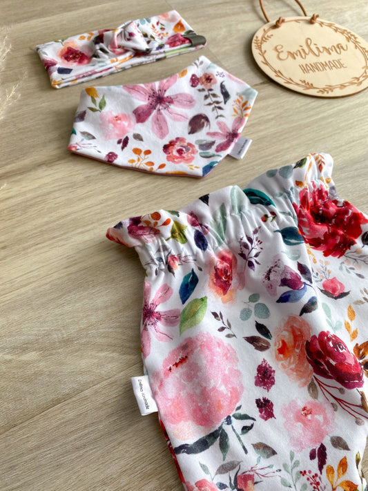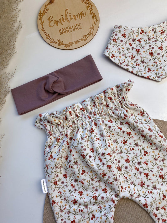 Set Paperbagpants Halstuch Baby Haarband Blumen