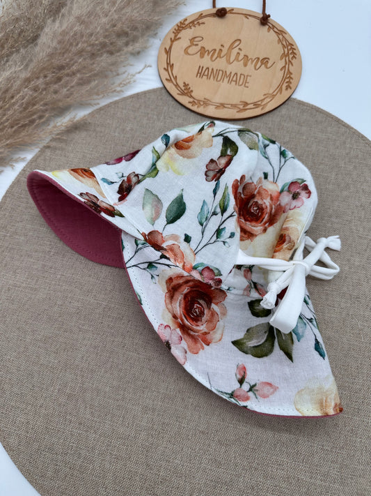 Walkmütze altrosa / Pastell Blumen Ku35-37cm ( Newborn)