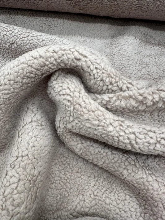 Stoff Baumwollteddy Teddyfleece taupe graubeige Meterware